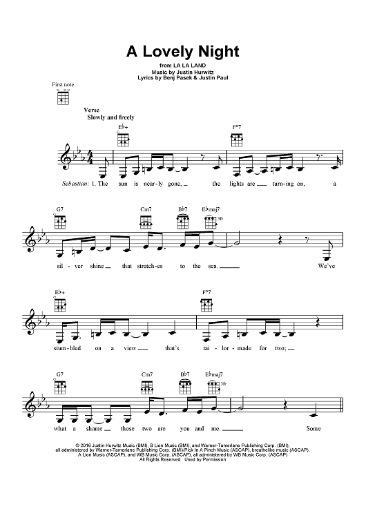 Digital Sheet Music for A Lovely Night - from La La Land by Benj Pasek, Justin Paul, Justin Hurwitz scored for Ukulele; id:463913