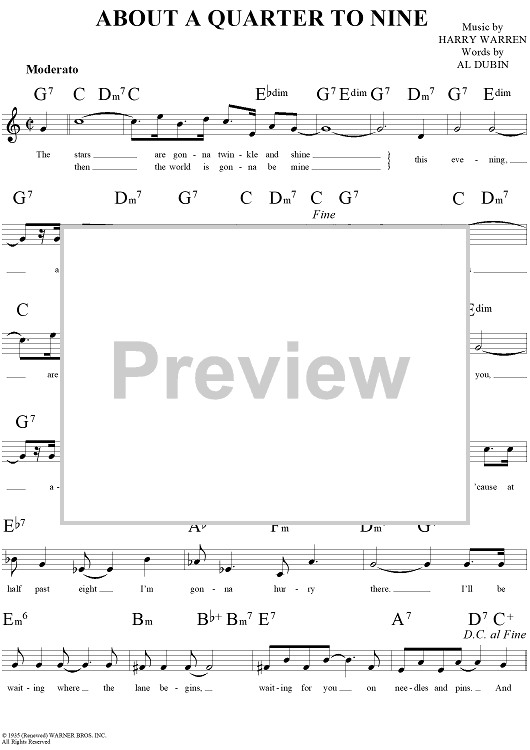 Digital Sheet Music for About a Quarter to Nine by Harry Warren, Al Dubin scored for Lead Sheet; id:264735