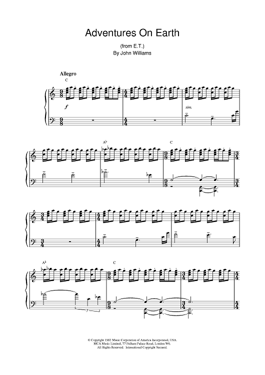 Digital Sheet Music for Adventures On Earth by John Williams scored for Piano; id:376640