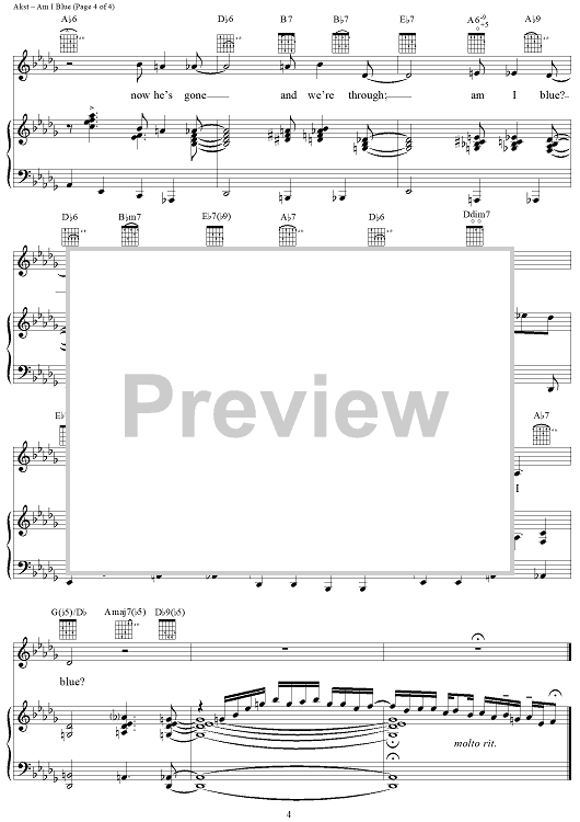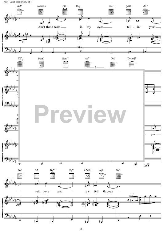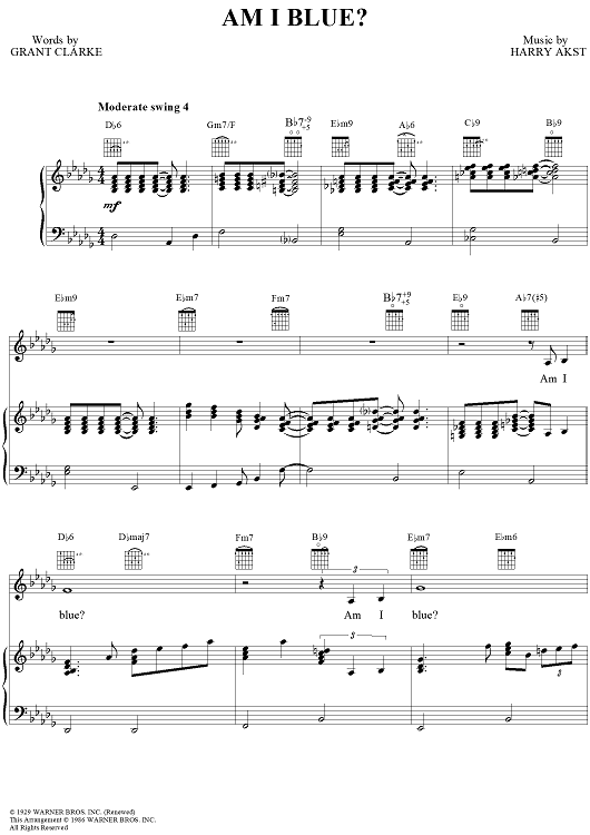 Digital Sheet Music for Am I Blue? by Harry Akst, Grant Clarke scored for Piano/Vocal/Chords; id:112808