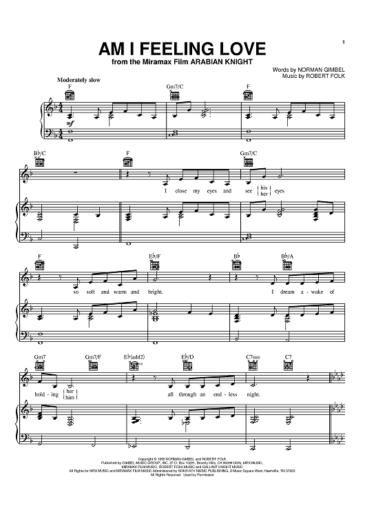 Digital Sheet Music for Am I Feeling Love by Norman Gimbel, Robert Folk scored for Piano/Vocal/Chords; id:373606