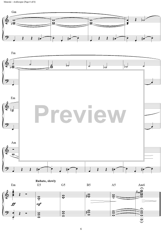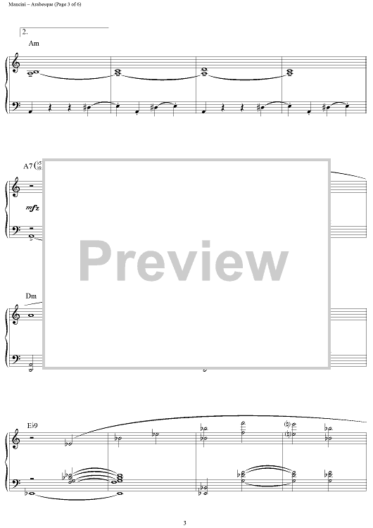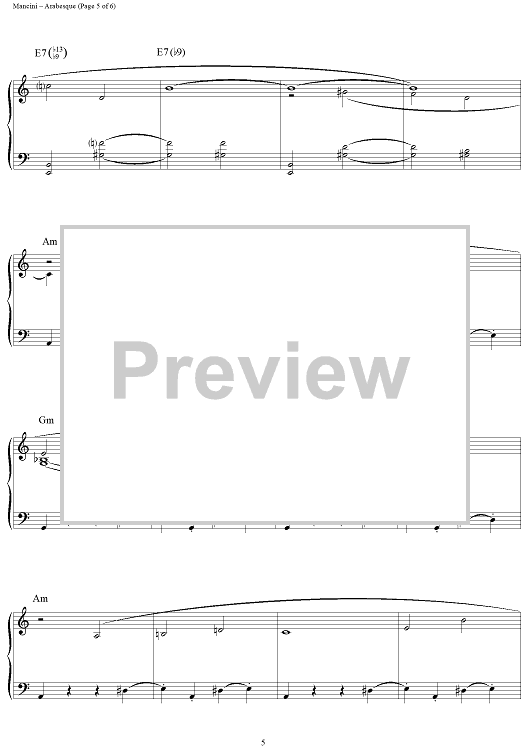 Digital Sheet Music for Arabesque by Henry Mancini scored for Piano Solo; id:251160