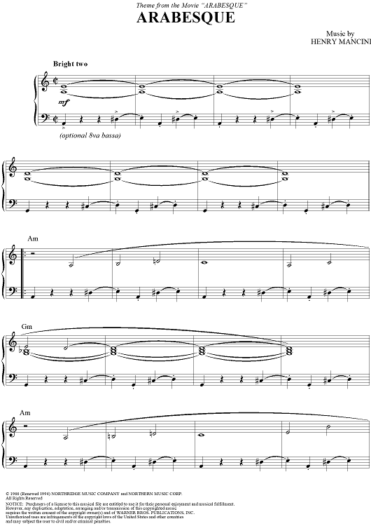 "Arabesque" Sheet Music by Henry Mancini