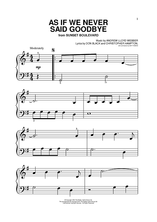 Digital Sheet Music for As If We Never Said Goodbye by Don Black, Andrew Lloyd Webber, Christopher Hampton, Barbra Streisand scored for Piano; id:374021