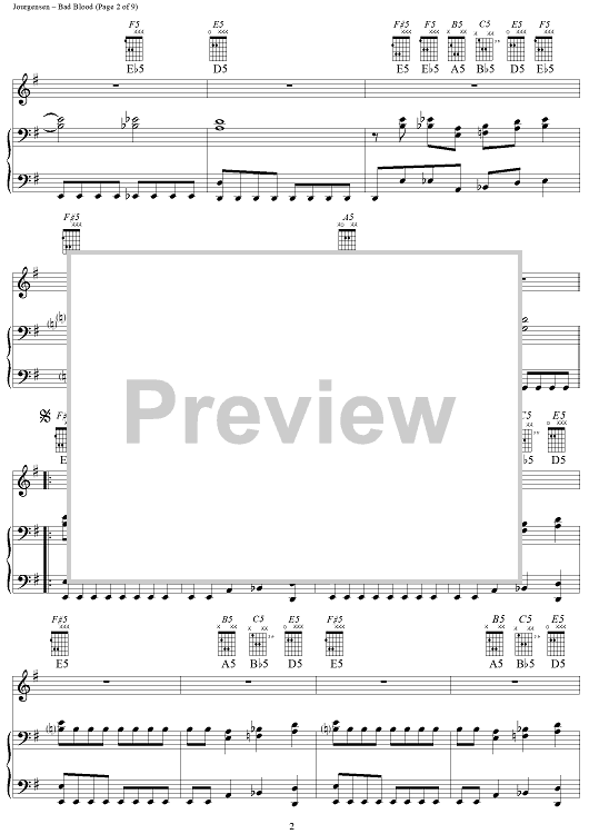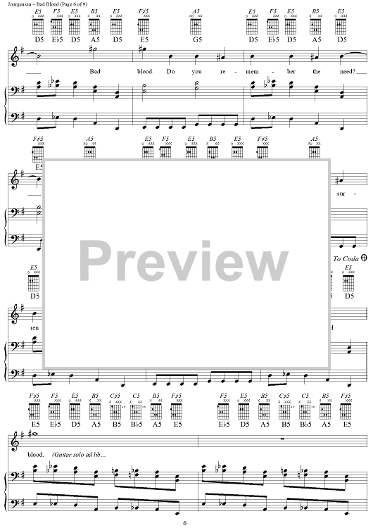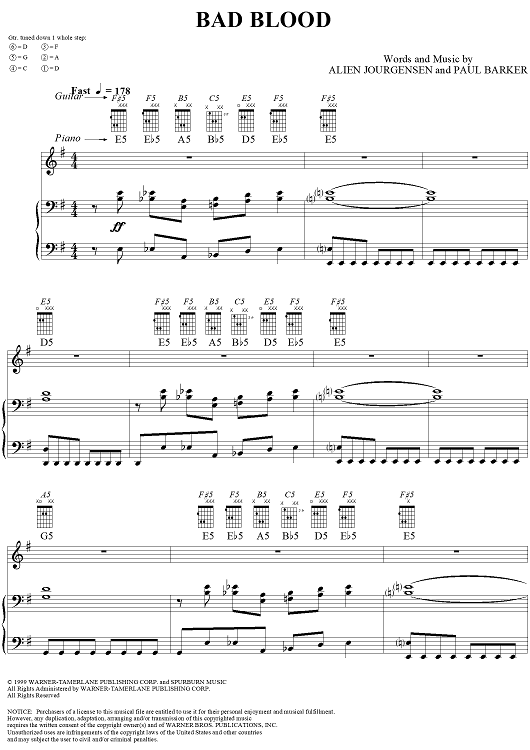 Digital Sheet Music for Bad Blood by Al Jourgensen, Ministry, Paul Barker scored for Piano/Vocal/Chords; id:193949