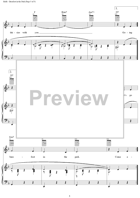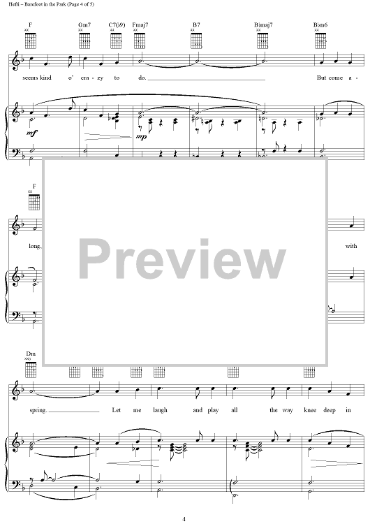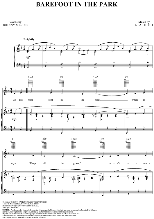 Digital Sheet Music for Barefoot in the Park by Johnny Mercer, Neal Hefti scored for Piano/Vocal/Chords; id:267028