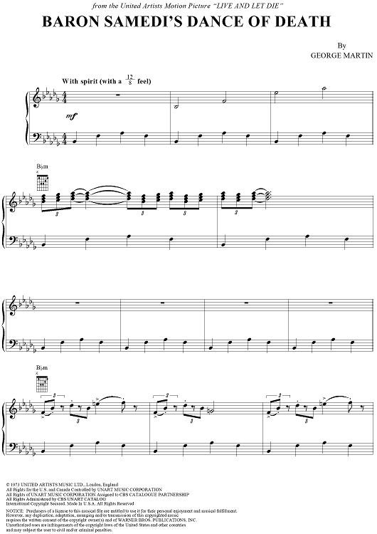 "Baron Samedi's Dance of Death" Sheet Music by George Martin