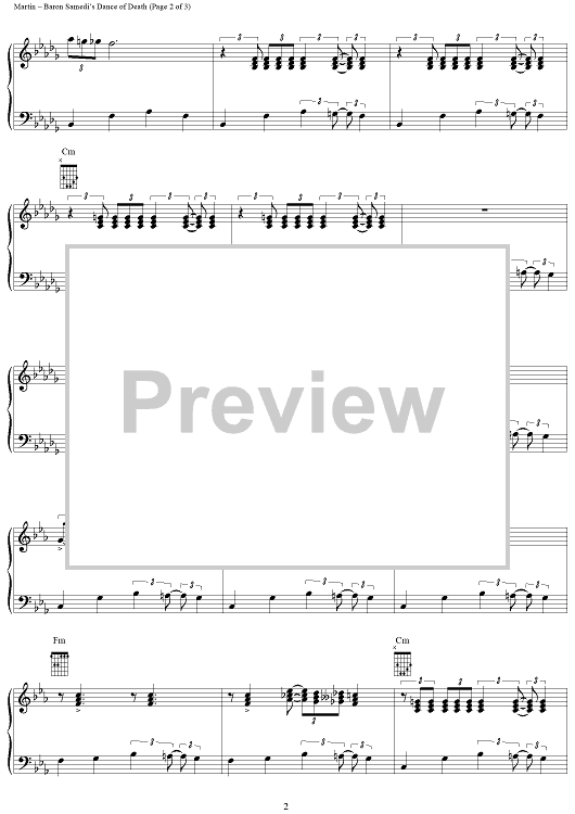 Digital Sheet Music for Baron Samedi's Dance of Death by George Martin scored for Piano Solo; id:241380