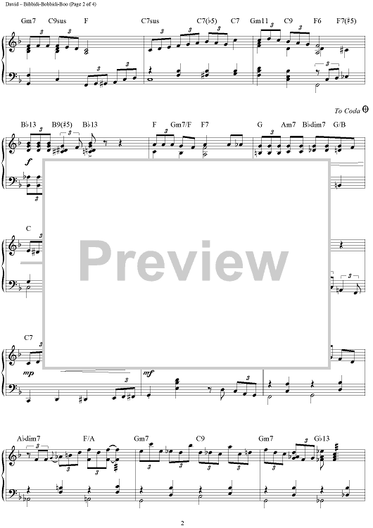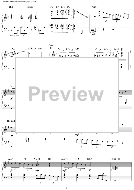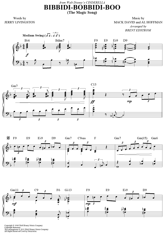 Digital Sheet Music for Bibbidi-Bobbidi-Boo (The Magic Song) by Jerry Livingston, Mack David, Al Hoffman, Brent Edstrom scored for Piano Solo; id:458709