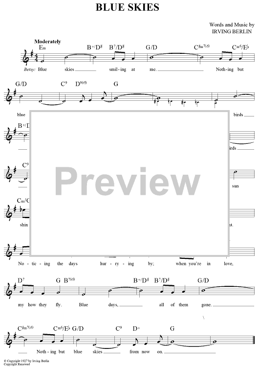 Digital Sheet Music for Blue Skies by Irving Berlin scored for Lead Sheet; id:441757