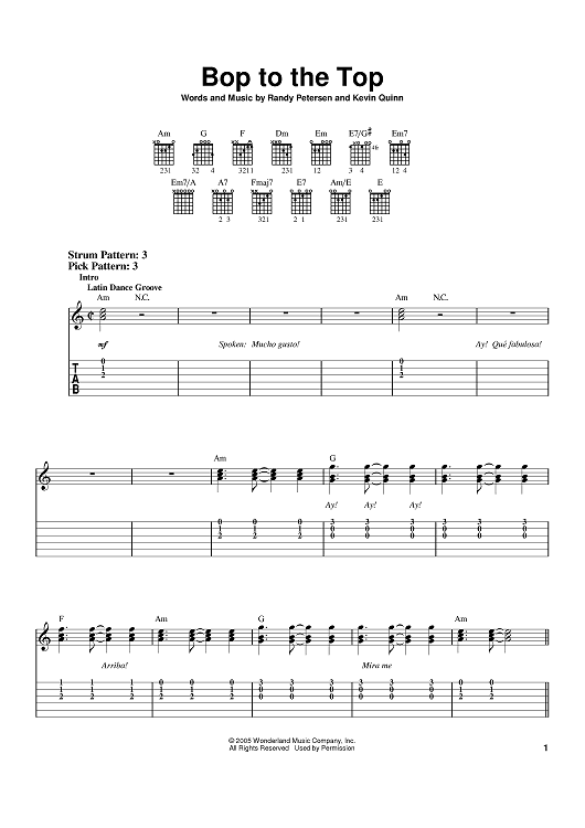 Digital Sheet Music for Bop To The Top by Randy Petersen, Kevin Quinn scored for Easy Guitar Tab; id:402251