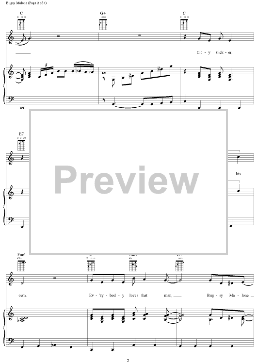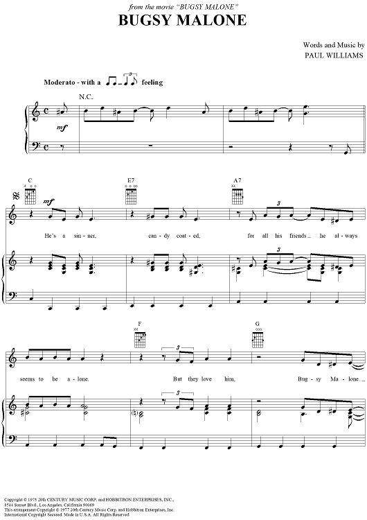 Digital Sheet Music for Bugsy Malone by Paul Williams scored for Piano/Vocal/Chords; id:263183
