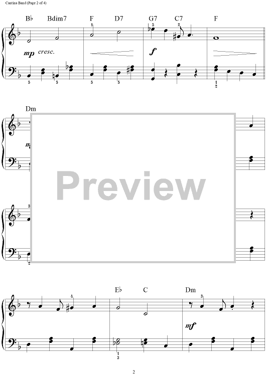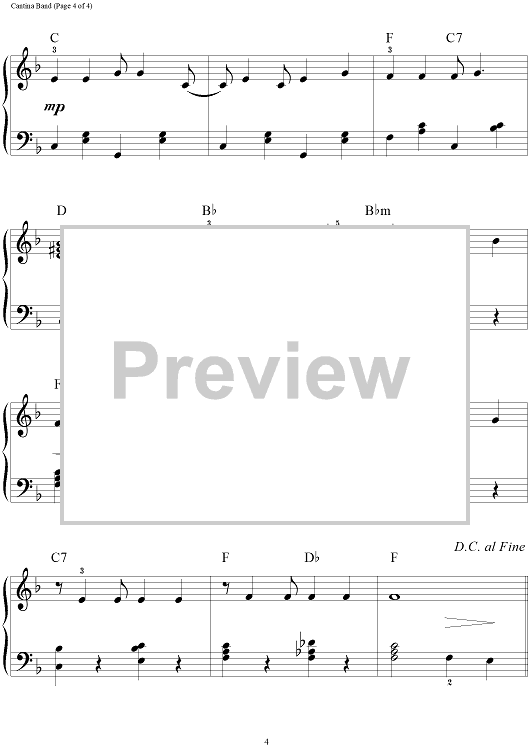 Digital Sheet Music for Cantina Band by Dan Coates, John Williams scored for Easy Piano; id:263638
