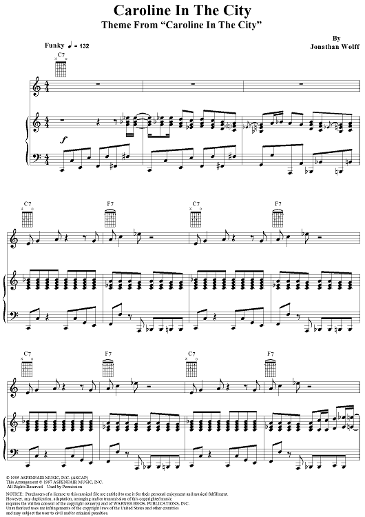 Digital Sheet Music for Caroline In The City (Main Theme) by Jonathan Wolff scored for Piano/Vocal/Chords; id:112236