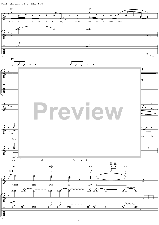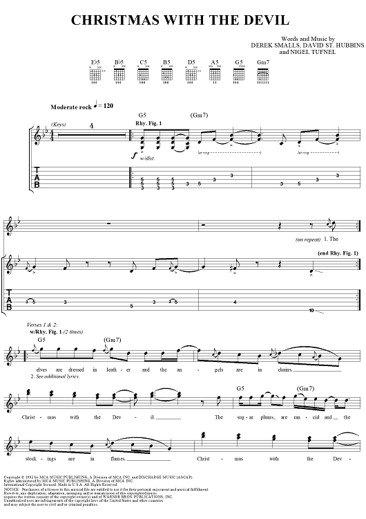 Digital Sheet Music for Christmas With the Devil by Spinal Tap, Nigel Tufnel, David St. Hubbins, Derek Smalls scored for Guitar Tab/Vocal; id:131712