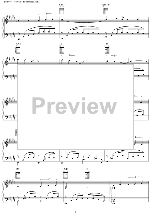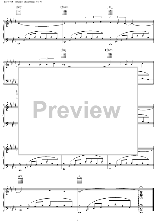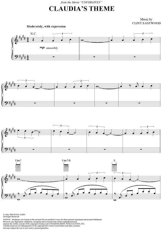 Digital Sheet Music for Claudia's Theme by Clint Eastwood scored for Piano Solo; id:114127