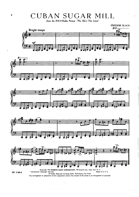 Digital Sheet Music for Cuban Sugar Mill by Freddie Slack scored for Piano Solo; id:430081