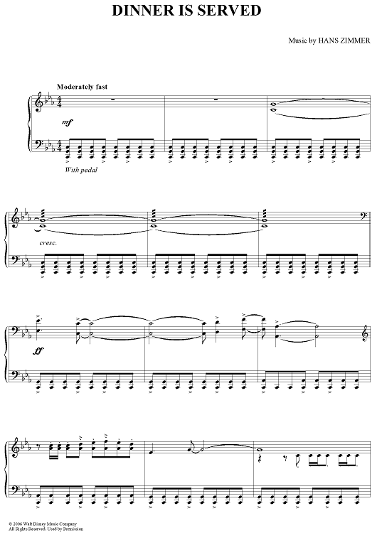 "Dinner Is Served" Sheet Music by Hans Zimmer