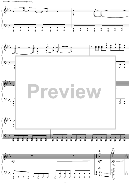 Digital Sheet Music for Dinner Is Served by Hans Zimmer scored for Piano Solo; id:391363
