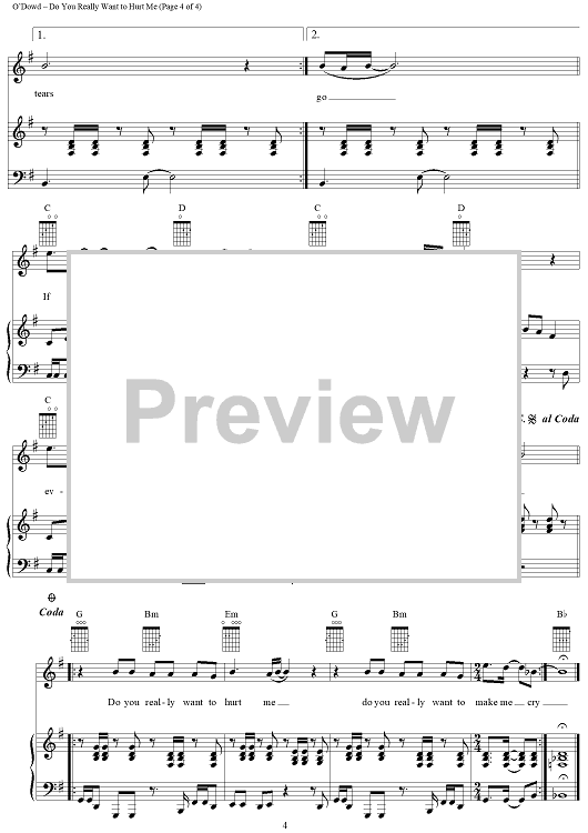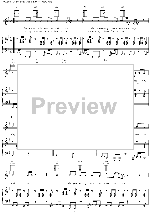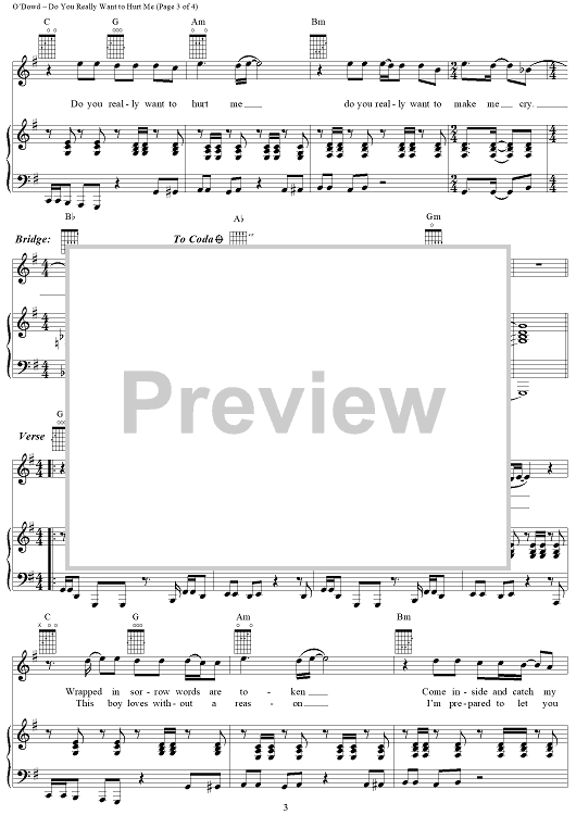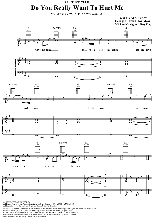 Digital Sheet Music for Do You Really Want to Hurt Me by Boy George, Jon Moss, Roy Hay, Mikey Craig, Culture Club scored for Piano/Vocal/Chords; id:111550
