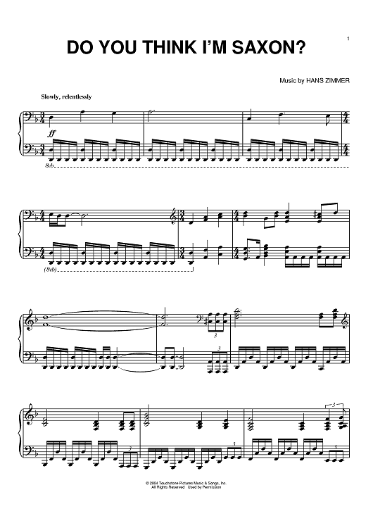 "Do You Think I'm Saxon?" Sheet Music by Hans Zimmer