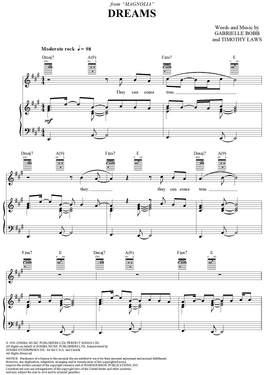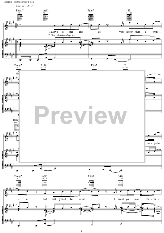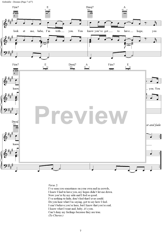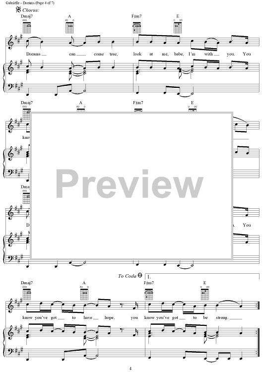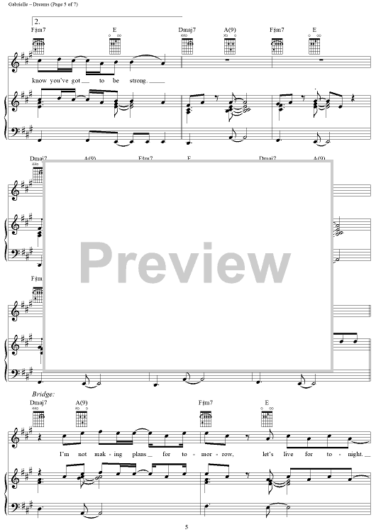 Digital Sheet Music for Dreams by Gabrielle, Timothy Laws scored for Piano/Vocal/Chords; id:235698