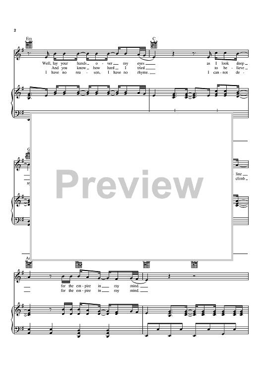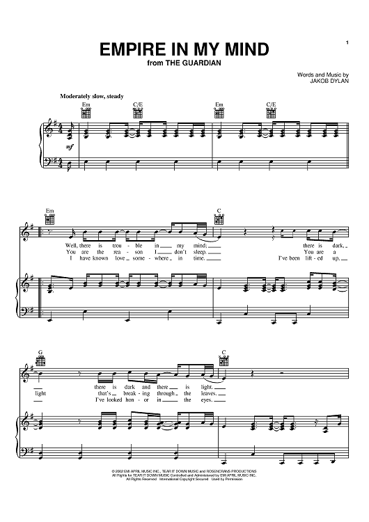 Digital Sheet Music for Empire In My Mind by Jakob Dylan, The Wallflowers scored for Piano/Vocal/Chords; id:373976