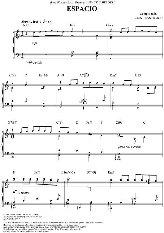 Digital Sheet Music for Espacio by Clint Eastwood scored for Piano Solo; id:241784