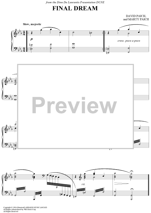 Digital Sheet Music for Final Dream by David Paich, Marty Paich scored for Piano Solo; id:458350