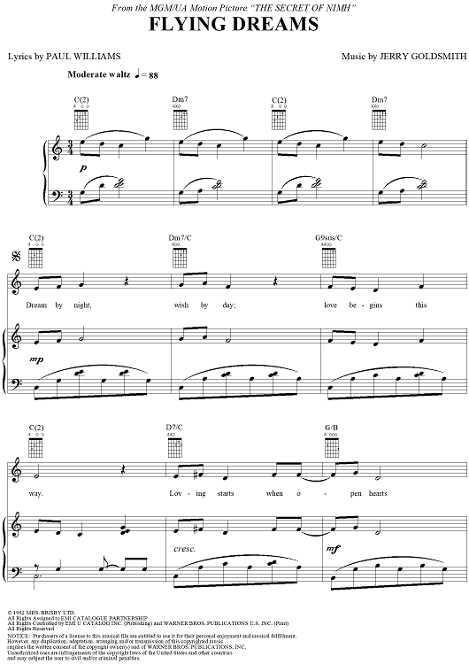 Digital Sheet Music for Flying Dreams by Jerry Goldsmith, Paul Williams scored for Piano/Vocal/Chords; id:219053