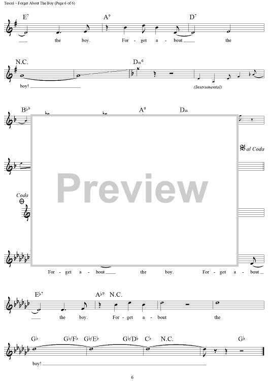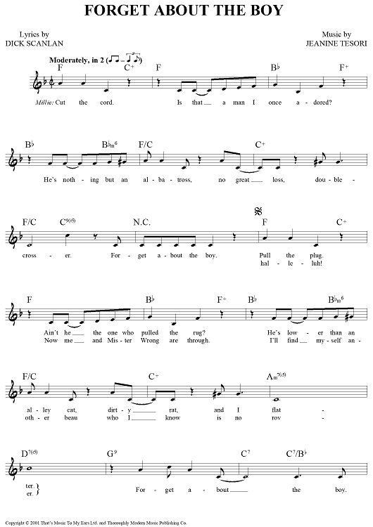 Digital Sheet Music for Forget About The Boy by Jeanine Tesori, Dick Scanlan scored for Lead Sheet; id:460442