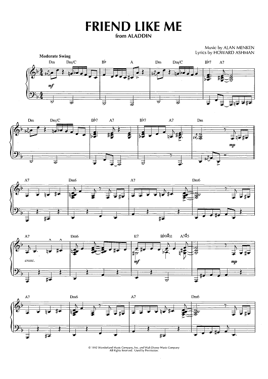 Digital Sheet Music for Friend Like Me - from Aladdin by Alan Menken, Howard Ashman, Brent Edstrom scored for Piano Solo; id:466165