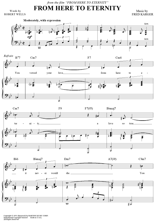 Digital Sheet Music for From Here to Eternity by Frank Sinatra, Robert Wells, Fred Karger scored for Piano/Vocal/Chords; id:111935