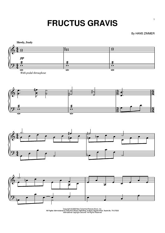 "Fructus Gravis" Sheet Music by Hans Zimmer