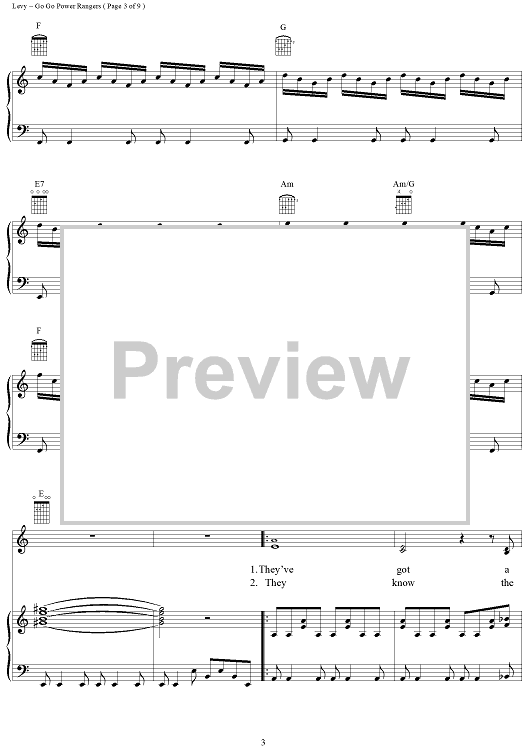 Digital Sheet Music for Go Go Power Rangers by Shuki Levy, Kussa Mahchi scored for Piano/Vocal/Chords; id:111110