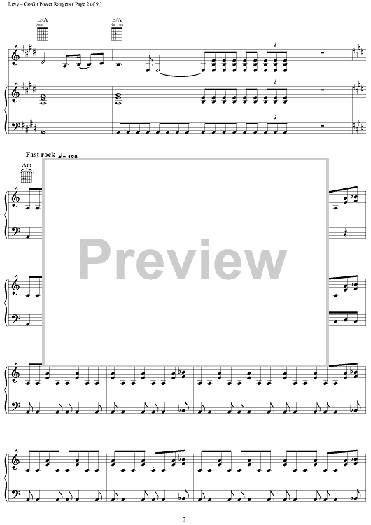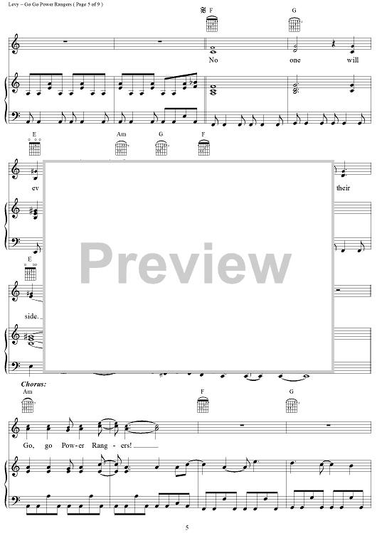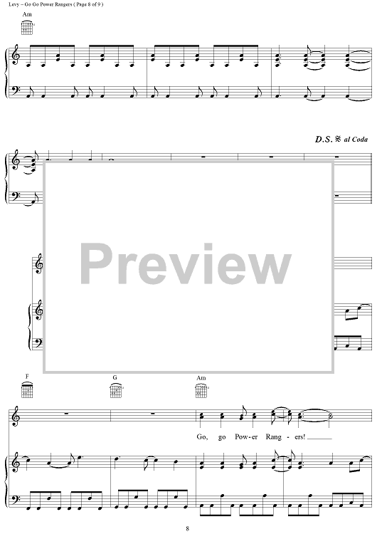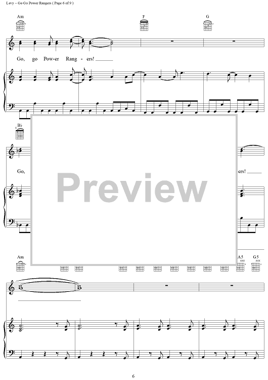 "Go Go Power Rangers" Sheet Music by Shuki Levy