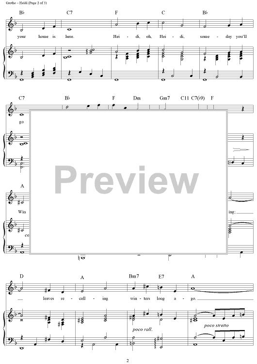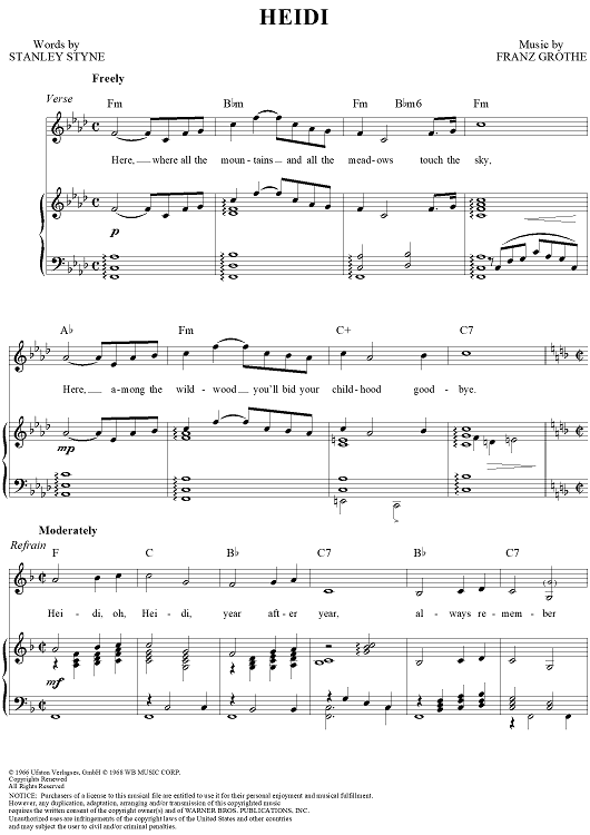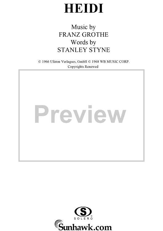 Digital Sheet Music for Heidi by Franz Grothe, Stanley Styne scored for Piano/Vocal/Chords; id:120555