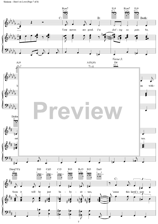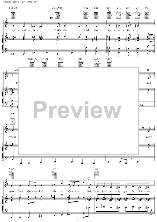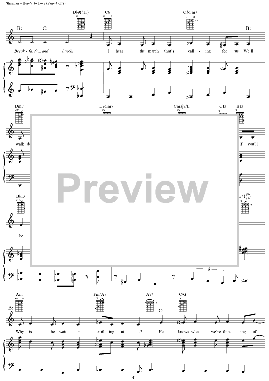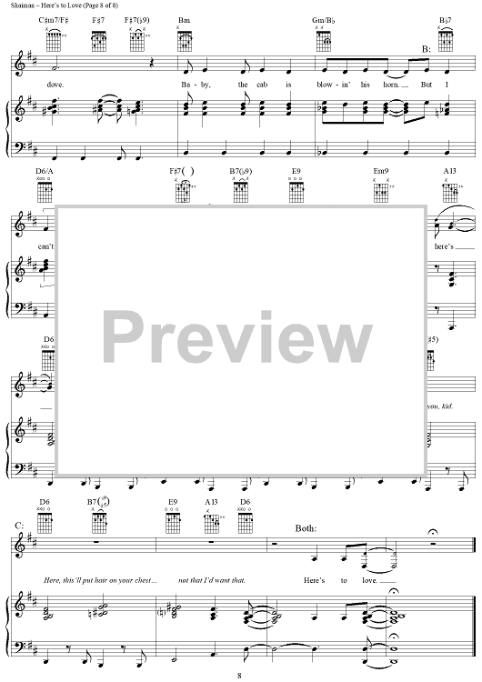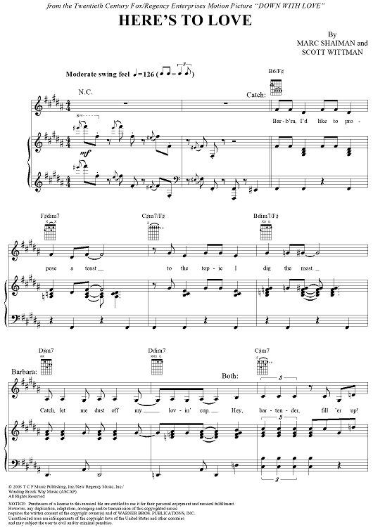 Digital Sheet Music for Here's to Love by Marc Shaiman, Ewan McGregor, Renée Zellweger, Scott Wittman scored for Piano/Vocal/Chords; id:297387