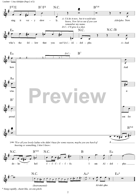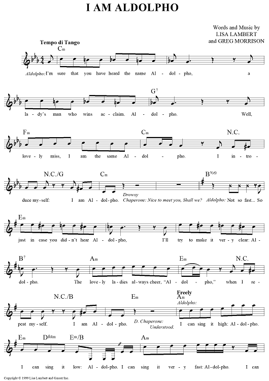 Digital Sheet Music for I Am Aldolpho by Lisa Lambert, Greg Morrison scored for Lead Sheet; id:442046
