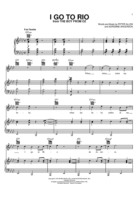 Digital Sheet Music for I Go To Rio by Peter Allen, Adrienne Anderson scored for Piano/Vocal/Chords; id:373343