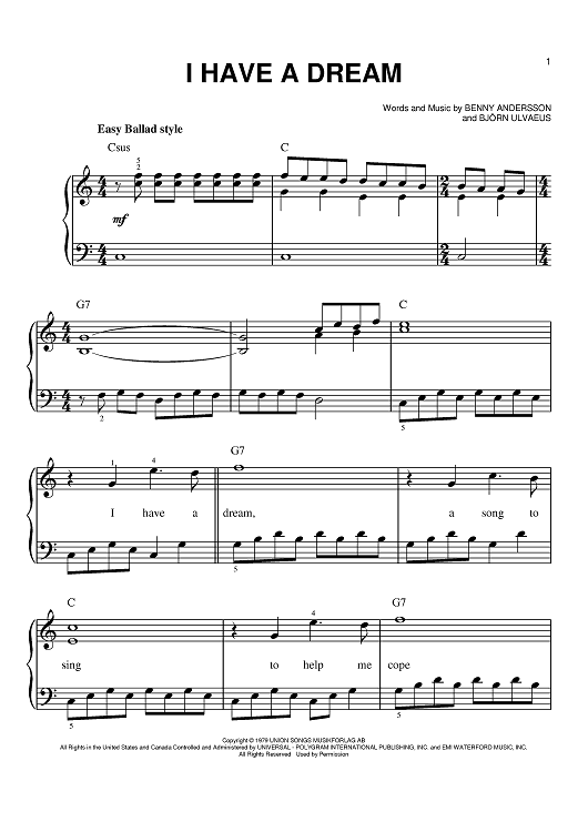 Digital Sheet Music for I Have A Dream by ABBA, Benny Andersson, Bjorn Ulvaeus scored for Easy Piano; id:391893