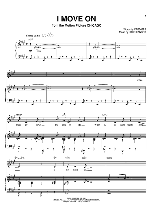 Digital Sheet Music for I Move On by John Kander, Fred Ebb, Catherine Zeta-Jones, Renée Zellweger scored for Piano/Vocal/Chords; id:373195