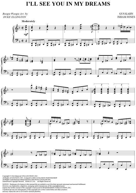 Digital Sheet Music for I'll See You In My Dreams by Gus Kahn, Duke Ellington, Isham Jones scored for Piano Solo; id:116415