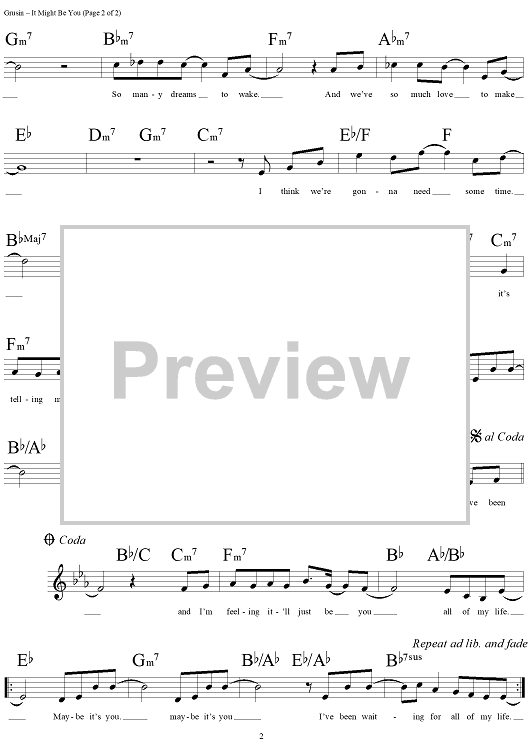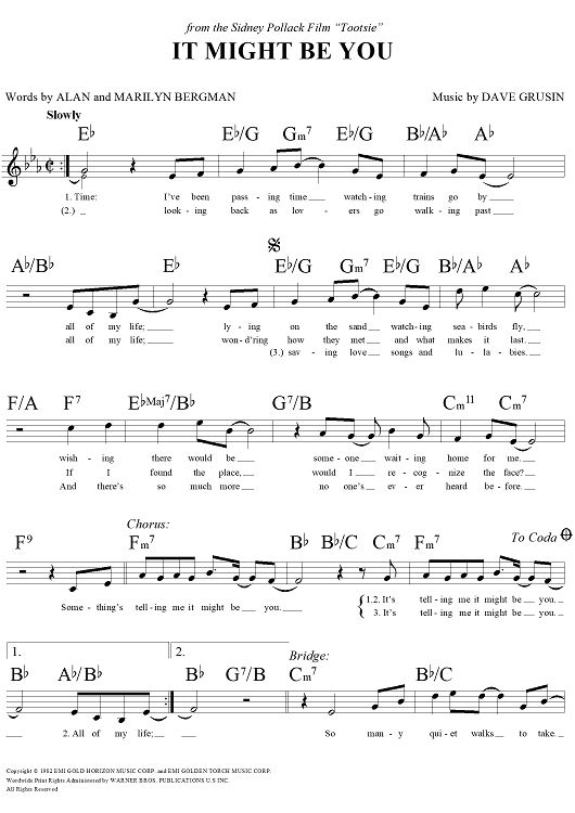 Digital Sheet Music for It Might Be You by , Alan Bergman, Marilyn Bergman, Dave Grusin scored for Lead Sheet; id:111720