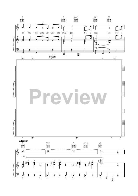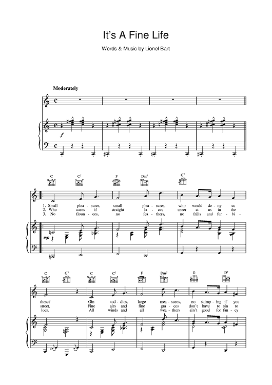 Digital Sheet Music for It's A Fine Life by Lionel Bart scored for Piano/Vocal/Chords; id:380227