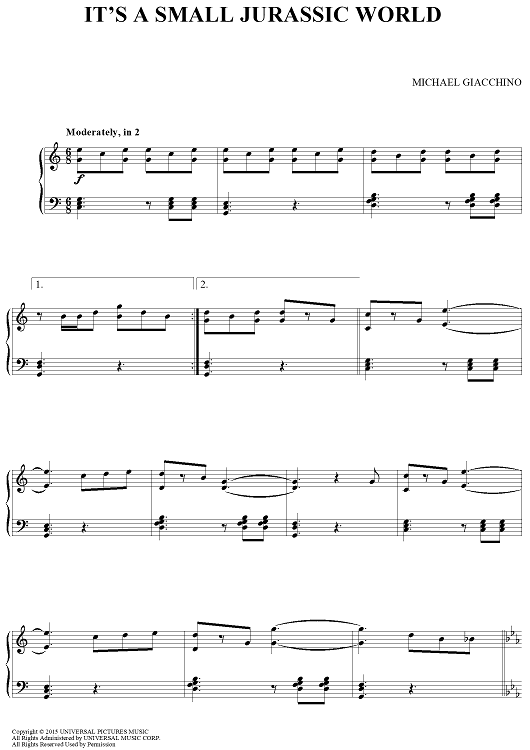 "It's A Small Jurassic World" Sheet Music by Michael Giacchino