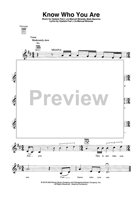 Digital Sheet Music for Know Who You Are (from Moana) by Mark Mancina, Lin-Manuel Miranda, Opetaia Foa'i scored for Ukulele; id:464996