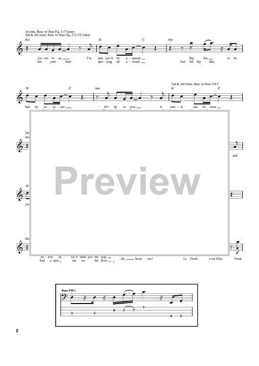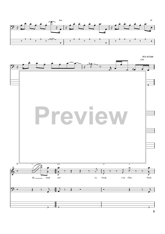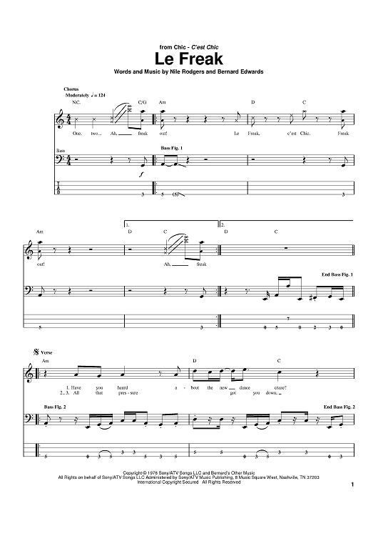 Digital Sheet Music for Le Freak by Nile Rodgers, Bernard Edwards, Chic scored for Bass Tab; id:390138