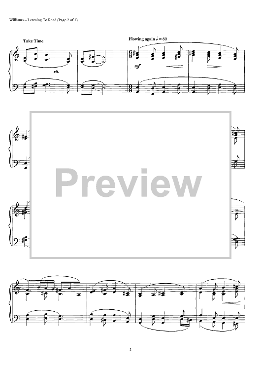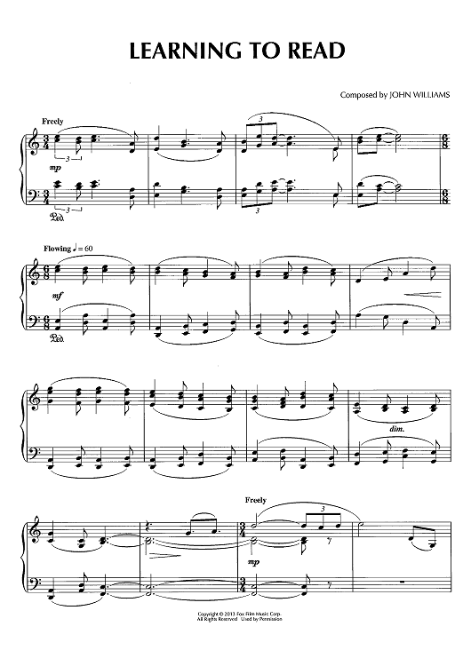 Digital Sheet Music for LearningTo Read by John Williams scored for Piano Solo; id:441979
