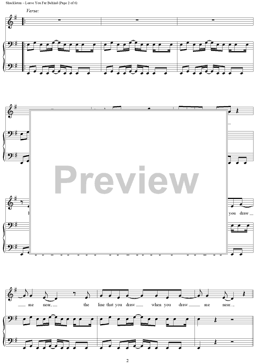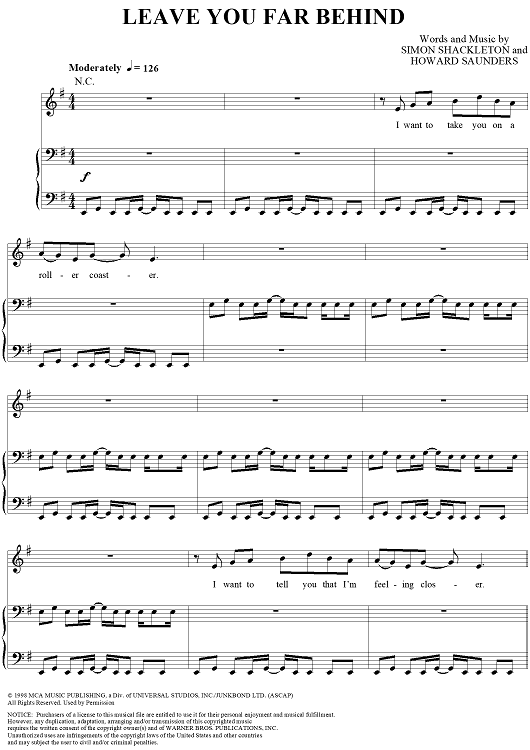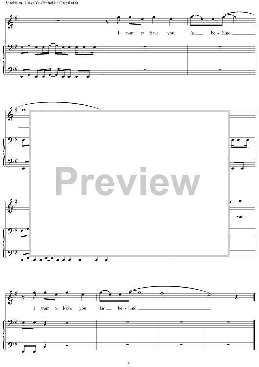 Digital Sheet Music for Leave You Far Behind by Simon Shackleton, Howard Saunders, Lunatic Calm scored for Piano/Vocal/Chords; id:219473